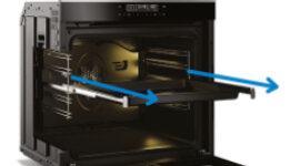 The oven's telescopic runners ensure you can effortlessly put trays of food in the oven, and take them out, with ease and less resistance.