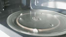 Place a cup of water with a drop of washing-up liquid in the microwave and add a little spoon. Just set the cleaning programme and let the microwave do the rest. The cleaning system softens food so you can just wipe it down, for fast cleaning.