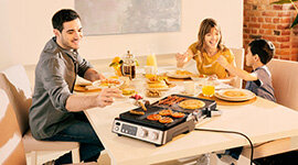 Its smart combination of Grill and Griddle plates and three versatile cooking positions lets you prepare anything from juicy meats and fish to veggies and bruschetta. Boasting 2000 watts of power, it heats up quickly and delivers consistent, delicious results.