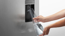 The slimline water dispenser makes it easy to fill almost any sized jug or vessel with cool filtered water without taking away any storage space from the refrigerator.